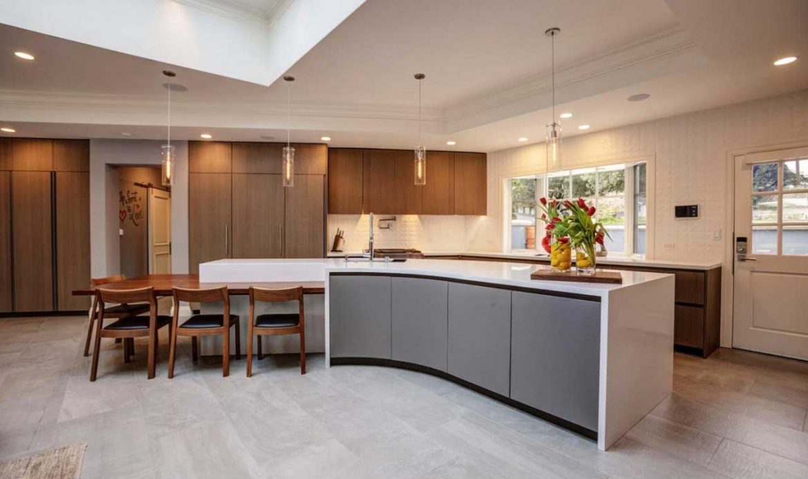 مطبخ راقٍ مزوّد بأجهزة حديثة ومساحات تخزين كبيرة